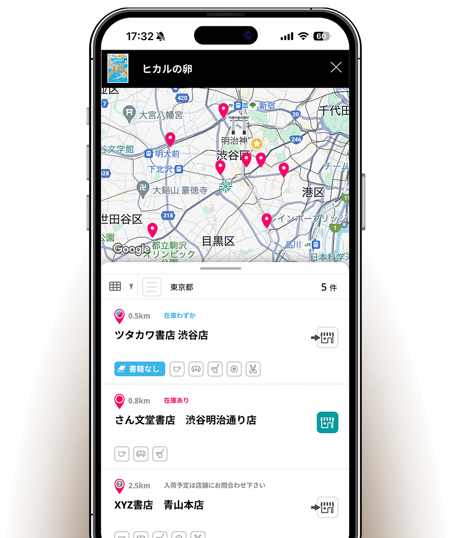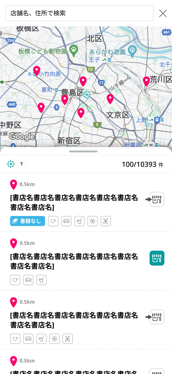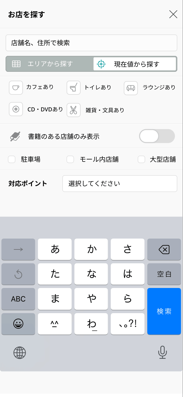 また、ちょっと本屋さんに行きたい時に近くの店舗はどんな店舗か?対応しているポイントは何か?書店の事まで検索できる。