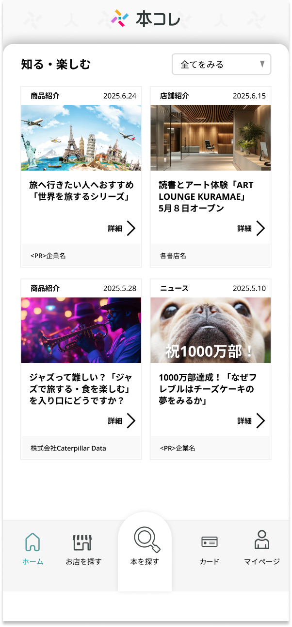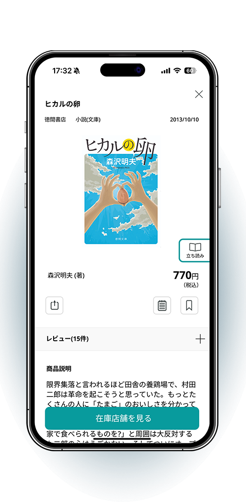 いま読みたい本、気になっているジャンルやシリーズの最新作など、書籍の情報を簡単に検索。そしてその在庫がある店舗まで見つけられます。