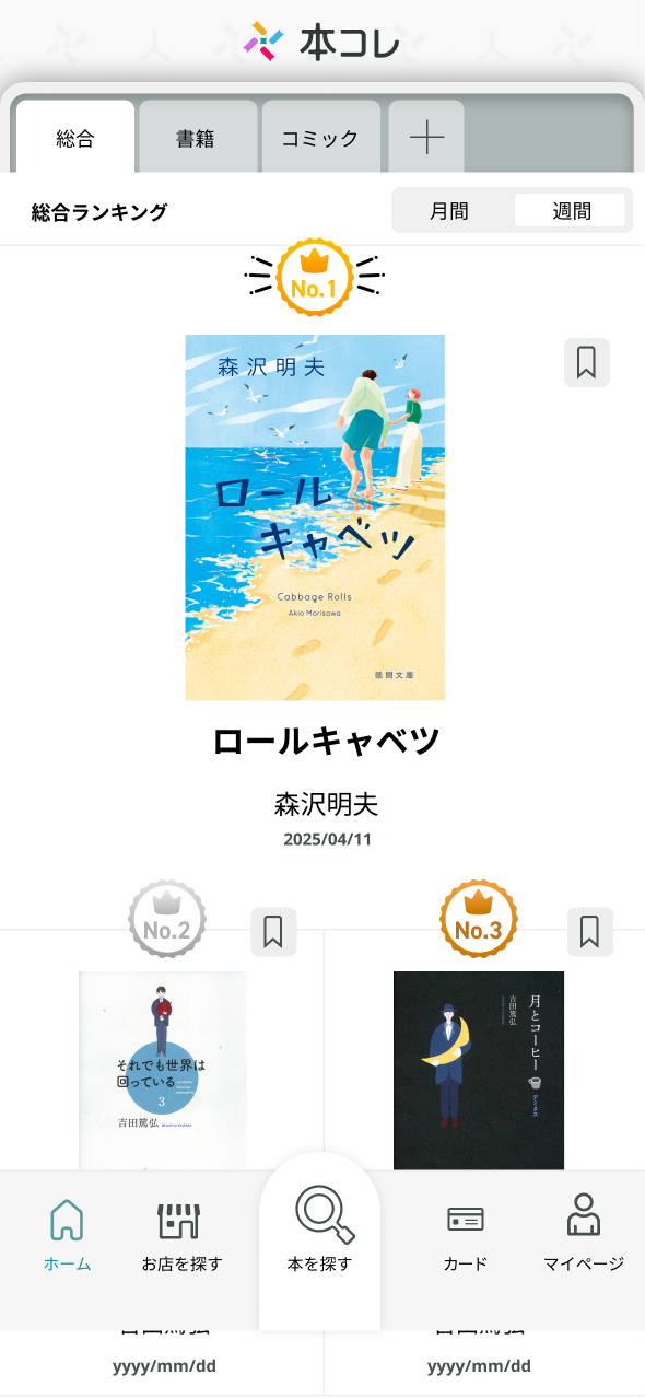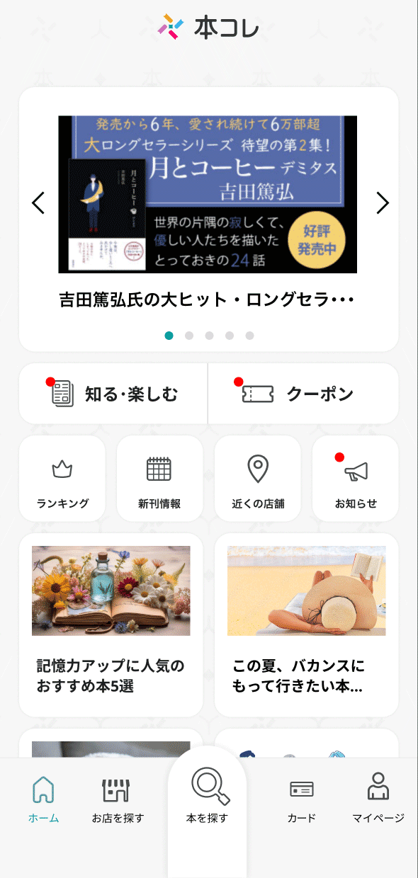- 各機能へのショートカット、お得な情報や新刊の案内、検索やマイページへのナビゲーションなど、各機能にアクセスできます。