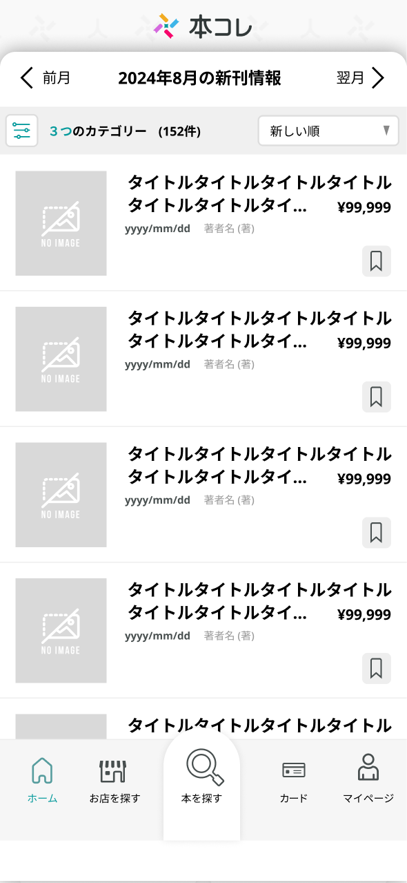 - 前月・当月・翌月の3ヶ月分の新刊情報が確認できます。気になる新刊をブックマークしておけば、あとからマイページでチェックできます。
